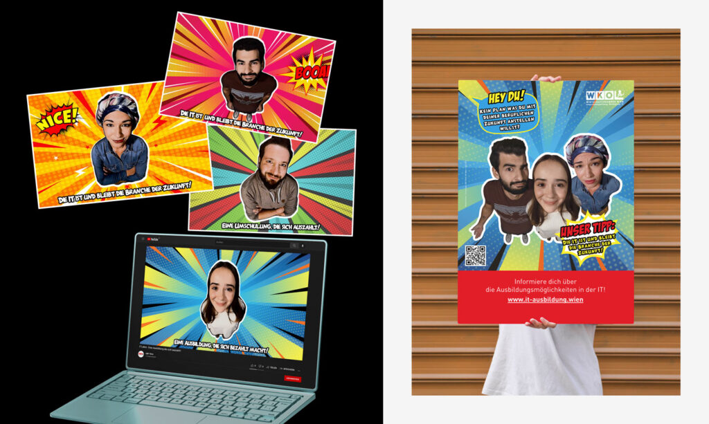 Für die Berufsgruppe IT der UBIT Wien durften wir über die letzten zwei Jahre Kampagnen entwickeln, um gegen den Fachkräftemangel anzukämpfen. Im Zentrum stand dabei der Abbau von Stereotypen rund um das Berufsfeld IT, denn noch immer wird die Branche häufig auf das reine Programmieren reduziert – ein Klischee, das weder dem vielfältigen Alltag in IT-Berufen noch den unterschiedlichen Ausbildungswegen gerecht wird.